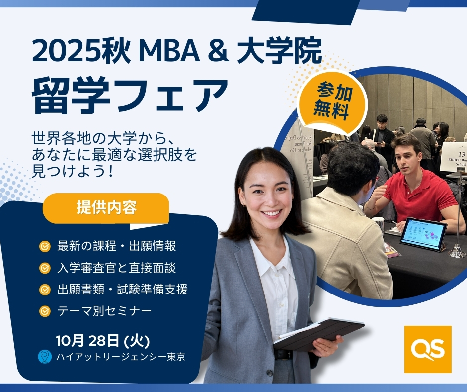 2025年秋、QSが主催するMBA留学フェアが東京で開催されます。